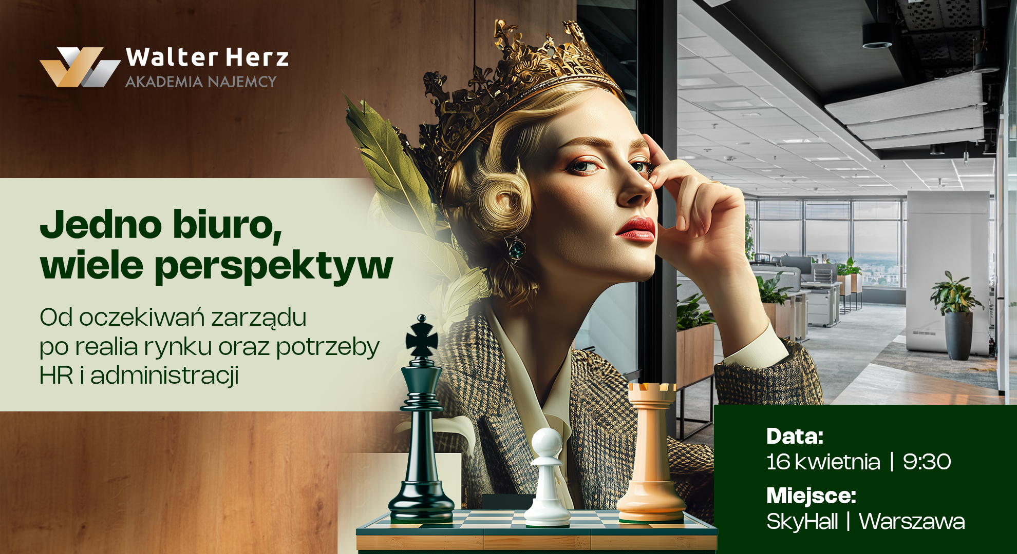 Akademia Najemcy w SkyHall w Warszawie to spotkanie dla osób z Administracji i HR, które wiedzą, że projekt biura nie jest prostym ruchem, ale całą rozgrywką między czasem, budżetem, oczekiwaniami zarządu i ograniczeniami rynku. To wydarzenie dla tych, którzy na co dzień prowadzą taki proces pod presją czasu, przy wysokich oczekiwaniach zarządu i w realiach rynku, który rzadko daje proste odpowiedzi. Na jednej szachownicy spotykają się tu trzy perspektywy: zarząd, patrzący na ryzyko i koszty, HR, odpowiedzialny za ludzi i kulturę pracy oraz administracja, która przekłada decyzje na realne działania i operacje. W Akademii Najemcy pomagamy połączyć te perspektywy w jedną wspólną strategię, której cel jest prosty: biuro, które naprawdę działa.